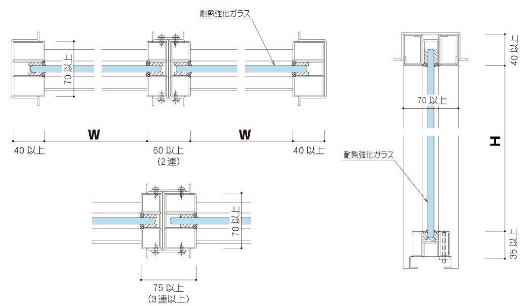 ・ 防火性能と耐衝撃性能を兼ね備えた耐熱強化ガラスを採用(厚み8ミリ、10ミリ、12ミリ)